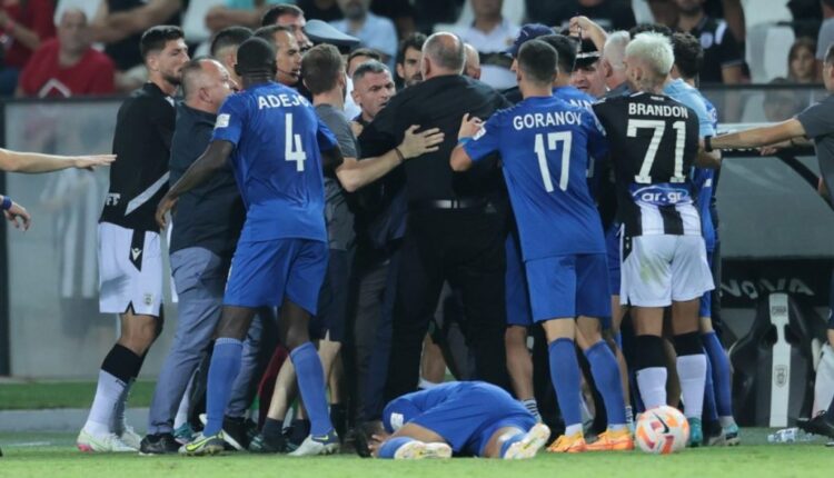 Επεισοδιακό ήταν το φινάλε της αναμέτρησης του ΠΑΟΚ με τη Λαμία στην Τούμπα. Με το χρονόμετρο να δείχνει το δεύτερο λεπτό των καθυστερήσεων, η Λαμία κέρδισε ένα πλάγιο, με τον Σιμόν να τρέχει να το εκτελέσει και να προσπαθεί να πάρει την μπάλα από έναν άνθρωπο του Δικεφάλου στον πάγκο.