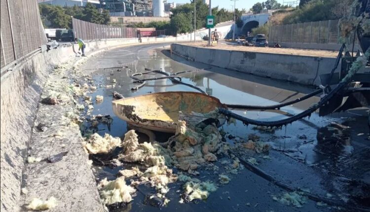 Παραμένει από πολύ νωρίς το πρωί κλειστή η περιφερειακή οδός Δραπετσώνας -Κερατσινίου, μετά από ανατροπή βυτιοφόρου.