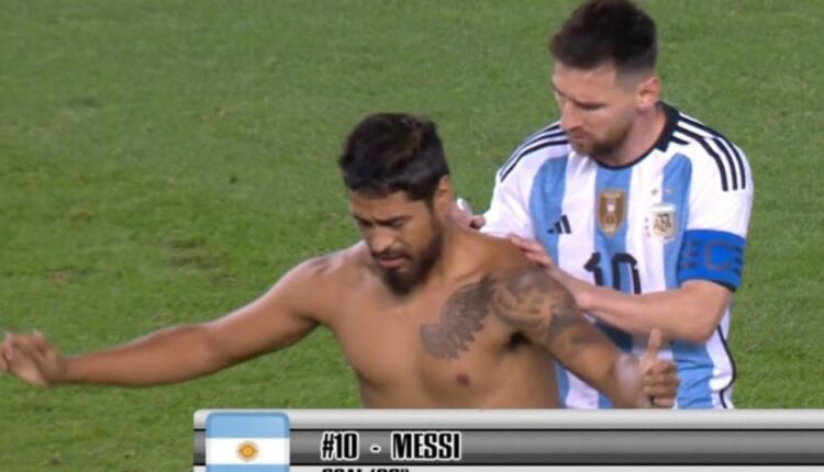 Αμεσα οι σεκιούριτι του γηπέδου επενέβησαν και λίγο έλειψε, να τραυματίσουν τον Λιονέλ Μέσι στην προσπάθειά τους να απομακρύνουν τον φίλαθλο!