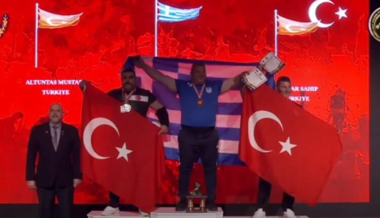 Όταν ολοκληρώθηκαν οι απονομές, ξεκίνησε να παίζει ο ελληνικός Εθνικός Ύμνος προς τιμήν του Χαραλαμπόπουλου, ωστόσο φαίνεται πως οι Τούρκοι δεν άντεξαν να τον ακούσουν ολόκληρο και, επιδεικνύοντας ασέβεια στο πνεύμα σεβασμού, τον «έκοψαν» στη μέση!