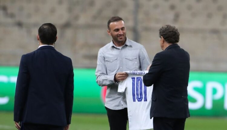 Ο Γερμανός που οδήγησε το αντιπροσωπευτικό συγκρότημα στην κατάκτηση του Euro το 2004, έδωσε τιμητική πλακέτα στον «Τόρο», αλλά και μια φανέλα της «γαλανόλευκης» με τον αριθμό 101, όσα και τα παιχνίδια στα οποία φόρεσε το Εθνόσημο.