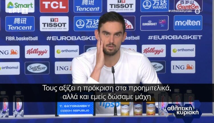 Δηλώσεις σχετικά με την εξέλιξη του αγώνα με την Εθνική μας Ομάδα Μπάσκετ έκανε ο άσος των Τσέχων, Τόμας Σατοράνσκι.