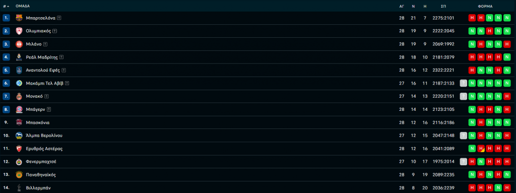 Ολοκληρώθηκε απόψε η κανονική περίοδος της φετινής Euroleague, με μοναδική εξαίρεση το ματς Μακάμπι Τελ Αβίβ – Φενέρμπαχτσε που θα γίνει στις 13 Απριλίου.