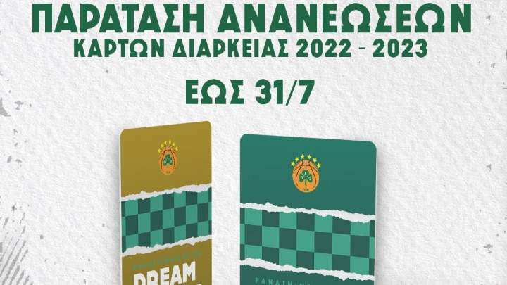 Το κείμενο: «Η ΚΑΕ Παναθηναϊκός ΟΠΑΠ ενημερώνει τους κατόχους διαρκείας της σεζόν 2021-2022 πως, λόγω της αυξημένης ζήτησης που υπάρχει, η διαδικασία ανανεώσεων των εισιτηρίων διαρκείας για την αγωνιστική περίοδο 2022-2023 παίρνει παράταση μέχρι την Κυριακή 31/7.