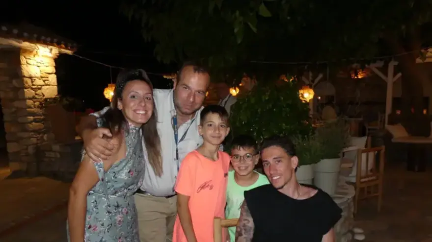 Ο Ντίνος έχει πολλούς γνωστούς και φίλους στο νησί – και πρώτη του κίνηση μόλις έφτασε στην Σκιάθο ήταν να κάνει μία βουτιά στην παραλία Αγία Ελένη, αφού γνωρίζει όλο το προσωπικό κι έχει οικογενειακές σχέσεις µε τον Λάµπρο Σανιδά, τον υπεύθυνο του summer beach bar «Agia Eleni».