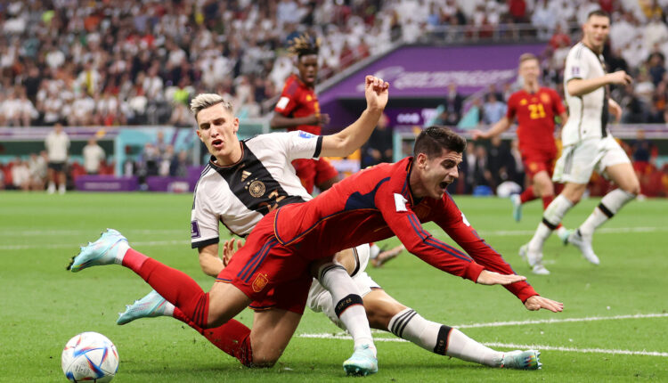 Η Ισπανία προηγήθηκε χάρη σε γκολ του Μοράτα, τα «πάντσερ» έχασαν μεγάλες ευκαιρίες για την ισοφάριση, την οποία βρήκαν τελικά χάρη σε γκολ του Φούλκρουγκ και με το 1-1 έμειναν ολοζώντανα για την πρόκριση στην επόμενη φάση. Από τον πάγκο ήρθαν στο ματς οι δύο σκόρερ.