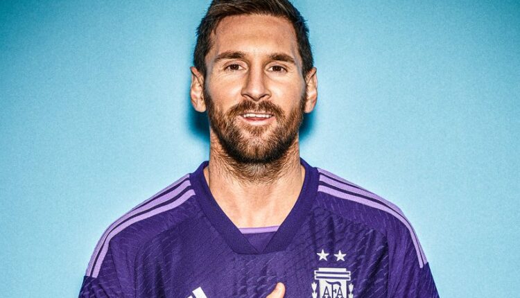 Leo Messi posing in Argentina's away kit for the 2022 World Cup💜 pic.twitter.com/xY0vUxD4CG