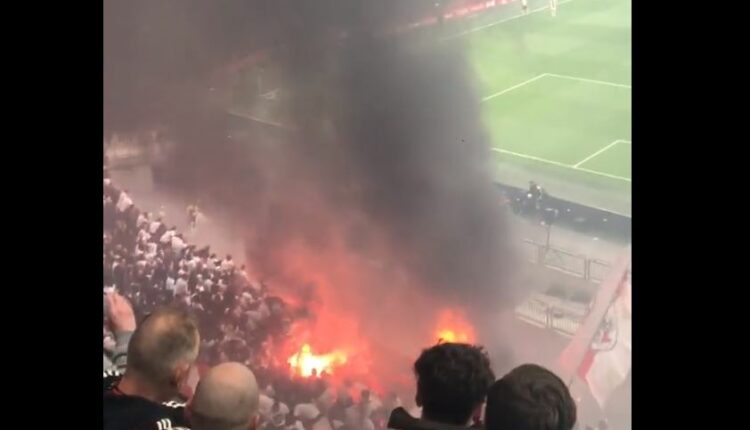 Τα πανό άρπαξαν φωτιά, με αποτέλεσμα οπαδοί του Αίαντα να κινδυνεύσουν.
