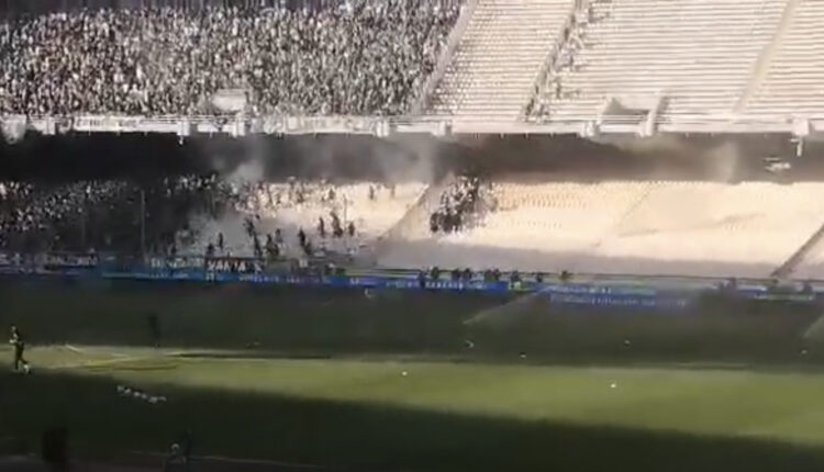 Χαμός στο ΟΑΚΑ μια ώρα πριν την έναρξη του τελικού ανάμεσα σε Παναθηναϊκό και ΠΑΟΚ, καθώς και οι οπαδοί των δυο ομάδων προσπαθούν να «σπάσουν» τον κλοιό της; αστυνομίας.