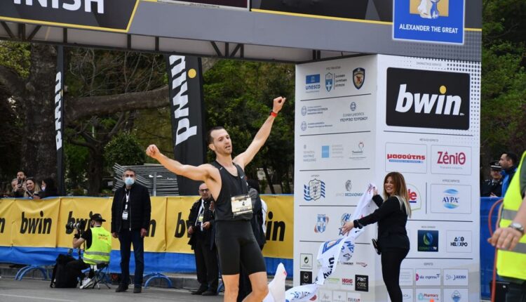 Ο Γιώργος Καλαπόδης έκοψε το νήμα στον τερματισμό του 16ου Διεθνούς Μαραθωνίου “Μέγας Αλέξανδρος”, στη Θεσσαλονίκη.
