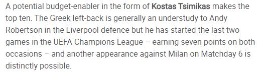Η χαμηλή του τιμή και η αποτελεσματικότητά του τον έχουν βάλει στις top 10 επιλογές αμυντικών στο παιχνίδι, δείγμα της τρομερής του κατάστασης, αλλά και της παραδοχής του από το ποδοσφαιρικό φίλαθλο κοινό, που βλέπει ξεκάθαρα την εκτόξευση του Τσιμίκα.