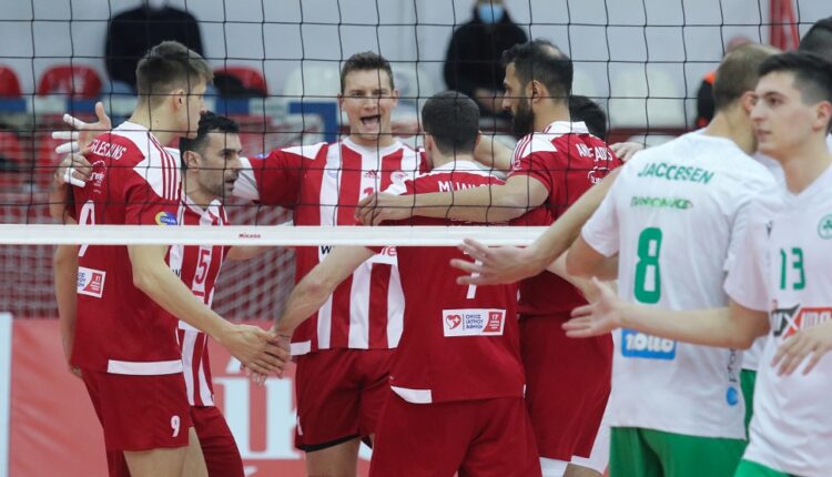 Οι “πράσινοι” νίκησαν τον Ολυμπιακό με 3-1 (29-27, 25-23, 23-25, 25-21), στο “Μ. Μερκούρη” στο πλαίσιο της 9ης αγωνιστικής της Β’ φάσης και “σφράγισαν” και μαθηματικά το πρωτάθλημα, μία αγωνιστική πριν το φινάλε.