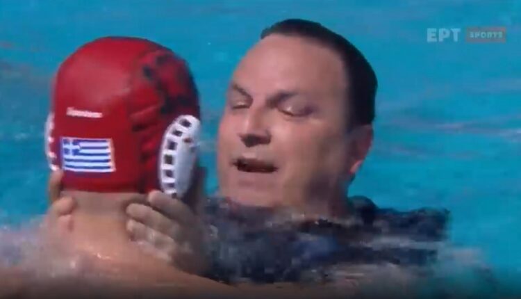 Με τη λήξη του ματς ο προπονητής της Εθνικής μας ομάδας βούτηξε στην πισίνα και πανηγύρισε μαζί τους παίκτες του τη μεγάλη επιτυχία που είναι μόνο η αρχή για το αντιπροσωπευτικό μας συγκρότημα που έχει όλο το μέλλον μπροστά του.