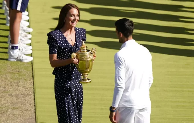 Μία έκπληξη περίμενε τον Νόβακ Τζόκοβιτς κατά την απονομή του τροπαίου μετά τη νίκη του στον τελικό του Wimbledon. Το τρόπαιο απένειμε στον Σέρβο αθλητή η δούκισσα του Κέιμπριτζ, Κέτι Μίντλετον, η οποία παρακολούθησε τον αγώνα μαζί με τα παιδιά και τον σύζυγό της Γουίλιαμ.