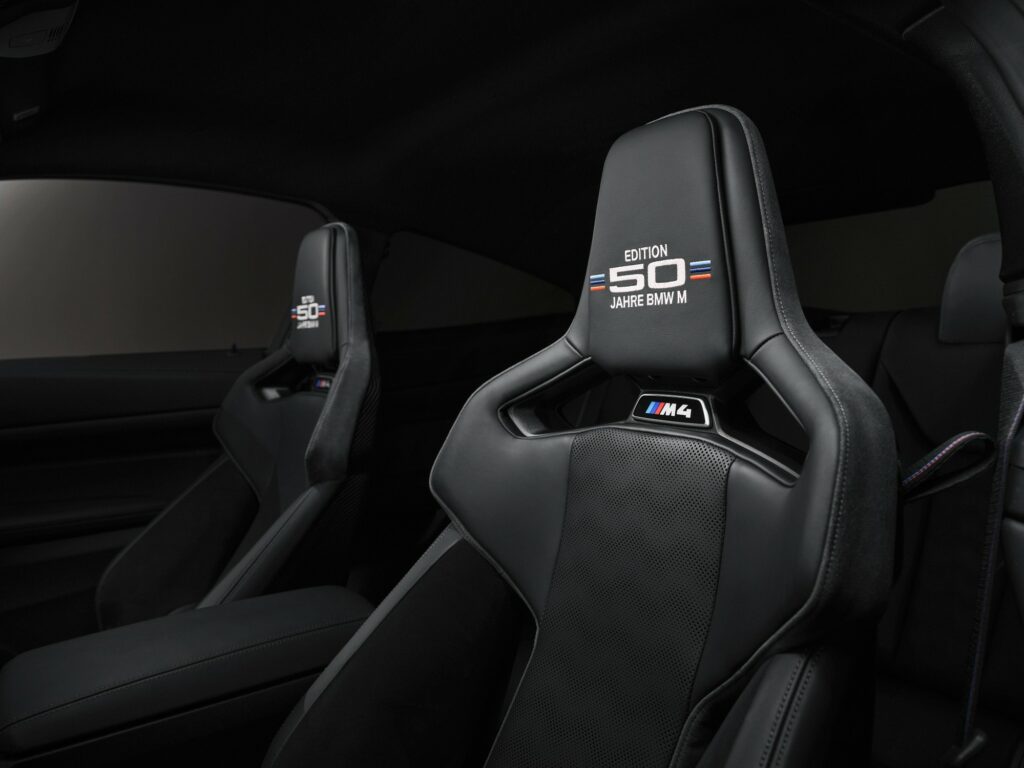 Στο εσωτερικό όλων των ειδικών εκδόσεων που βασίζονται στην BMW M4 Coupe, η επέτειος επισημαίνεται με στοιχεία όπως τα μαρσπιέ που φέρουν την επιγραφή “Edition 50 Jahre BMW M”, μία μεταλλική πλακέτα στην κεντρική κονσόλα με την επιγραφή “M4 Edition 50 Jahre BMW M” και ένα αντίστοιχο λογότυπο στα προσκέφαλα των στάνταρ σπορ καθισμάτων M και των προαιρετικών, ανθρακονημάτινων μπάκετ καθισμάτων M για τον οδηγό και τον συνοδηγό.