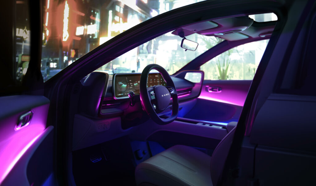 Το Dual Color Ambient Lighting παρέχει απαλό φωτισμό στο εσωτερικό του IONIQ 6. Οι χρήστες μπορούν να επιλέξουν από έναφάσμα 64 χρωμάτων και έξι θεμάτων διπλού χρώματος που αναπτύχθηκαν από ειδικούς στα χρώματα για να βοηθήσουν τουςοδηγούς και τους επιβάτες να αισθάνονται χαλαροί και άνετοι. Τα διαδραστικά φώτα pixel 4 σημείων στο τιμόνι επιτρέπουν την εύκολη επικοινωνία μεταξύ οδηγού και οχήματος.