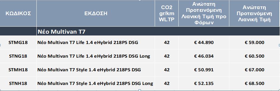 Οι τιμές του νέου Multivan eHybrid έχουν ως εξής: