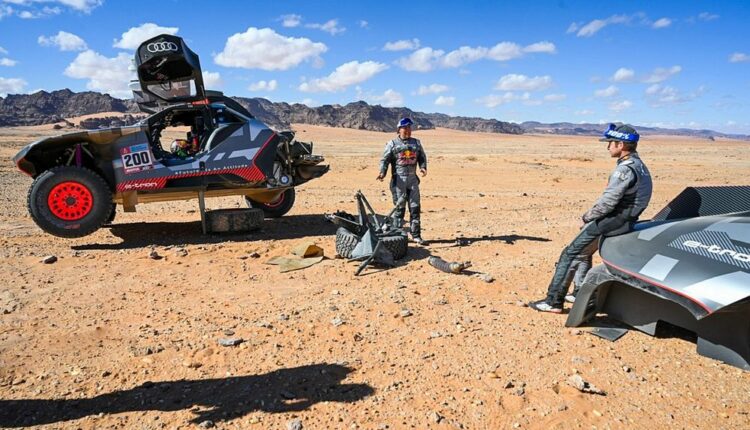 Όπως φαίνεται και στις φωτογραφίες, το πλήρωμα δεν τραυματίστηκε, όμως καταστράφηκε η πίσω αριστερή ανάρτηση. Το ηλεκτρικό Audi RS Q e-tron ακινητοποιήθηκε στο 153ο χλμ, περιμένοντας την ομάδα υποστήριξης. Πλέον εξανεμίστηκαν οι ελπίδες του Peterhansel να κατακτήσει την 15η νίκη του στο Ντακάρ.