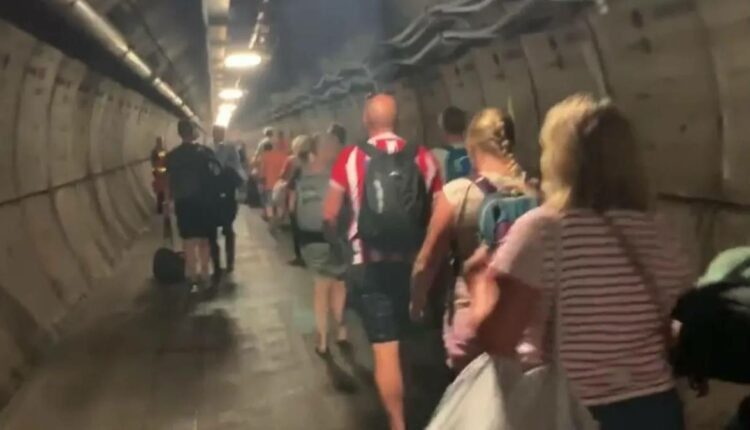 Video shared on social media appeared to show travellers walking along the central service tunnel after their train broke down en route to France on Tuesday evening.https://t.co/Jo9nzHSzHq pic.twitter.com/GCgC8ADJoo
