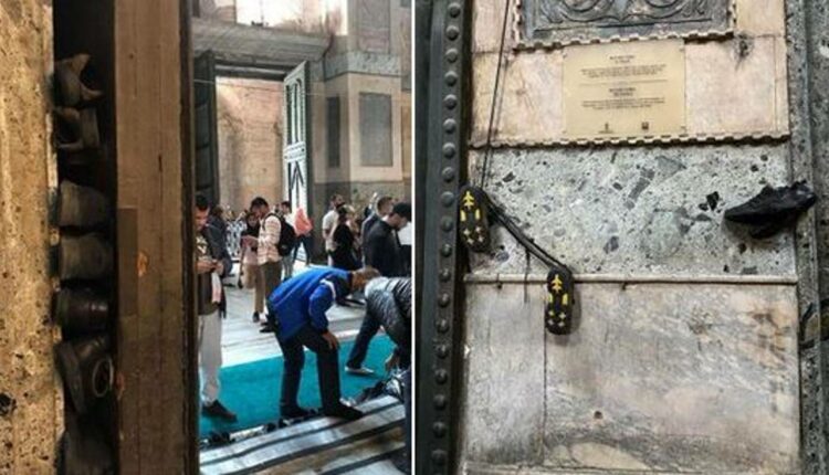 Ο υπεύθυνος του δήμου Κωνσταντινούπολης για την προστασία της ιστορικής κληρονομιάς της Πόλης, Μαχίρ Πολάτ, ανήρτησε εικόνες στο Twitter, στις οποίες φαίνεται ότι οι Τούρκοι έχουν μετατρέψει σημεία του ναού σε… παπουτσοθήκη.