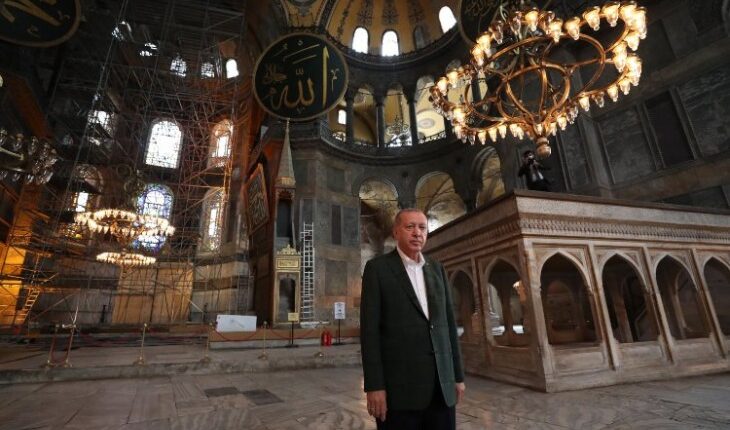Για τον Ερντογάν και τους οπαδούς του, η μετατροπή της Αγίας Σοφίας σε τζαμί αποτελεί ένα ορόσημο που δεν περιορίζεται στην επιστροφή της μουσουλμανικής λατρείας στο μνημείο. Προβάλλει όχι μόνο την Τουρκία ως ισχυρό μουσουλμανικό έθνος και το κέντρο του μετα-οθωμανικού χώρου, αλλά και τον ίδιο ηγέτη του σουνιτικού Ισλάμ. Αδιαφορώντας για τις αντιδράσεις της διεθνούς κοινής γνώμης και της Δύσης, με την οποία οι σχέσεις του δεν είναι στο καλύτερο σημείο τους, ο Τούρκος πρόεδρος χτίζει το αφήγημα του, ως απάντηση στη λαβωμένη δημοφιλία του. Η οικονομική κρίση έχει επηρεάσει σημαντικά τα ποσοστά αποδοχής του. Τελευταίες δημοσκοπήσεις εμφανίζουν το ποσοστό του κυβερνώντος κόμματος να έχει φτάσει στο 30%.