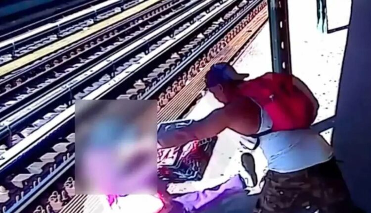 Ο μεγαλόσωμος άνδρας, που φορούσε καπέλο και λευκό φανελάκι, πλησίασε τη γυναίκα από πίσω, την άρπαξε και με τα δύο χέρια και την πέταξε στις ράγες.