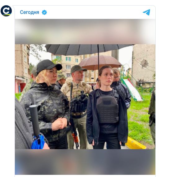 Στις φωτογραφίες η Μάριν δείχνει συγκλονισμένη, ενώ φορά ένα αλεξίσφαιρο γιλέκο σε φωτογραφίες που δημοσιεύτηκαν στον λογαριασμό Telegram της ρωσόφωνης ουκρανικής εφημερίδας Segodnya.