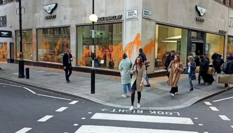 Η αντίδραση ήρθε αφότου συνελήφθησαν νωρίτερα σήμερα δύο ακτιβιστές για το κλίμα έπειτα από σοβαρές ζημιές που προκάλεσαν το πρωί, όταν ψέκασαν με πορτοκαλί χρώμα εκθέσεις πολυτελών αυτοκινήτων στην πλατεία Μπέρκλεϋ, στο κεντρικό Λονδίνο.