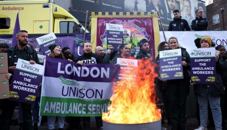 ΛΟΝΔΙΝΟ. Διαδοχικές απεργίες σε μια σειρά κλάδων προκηρύσσονται στη Βρετανία, καθώς μεγάλη μερίδα εργαζομένων διαμαρτύρεται για την αφαίμαξη του εισοδήματός τους από τον πληθωρισμό. Οι εργαζόμενοι στο βρετανικό ΕΚΑΒ απήργησαν χθες για πρώτη φορά από τη δεκαετία του 1980. Η κυβέρνηση του Συντηρητικού πρωθυπουργού Ρίσι Σούνακ απάντησε ζητώντας από τους πολίτες να αποφύγουν την υπερβολική κατανάλωση οινοπνευματωδών και τις… περιττές μετακινήσεις, ώστε να μειωθούν οι πιθανότητες να χρειαστούν ασθενοφόρο.