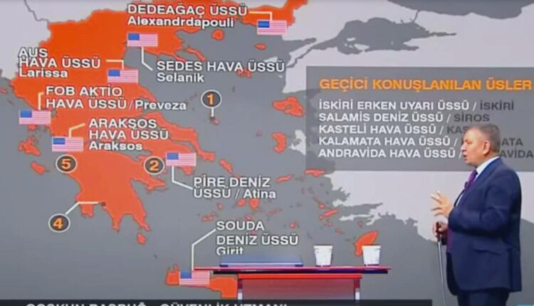 «Εδώ η Αμερική ετοιμάζεται να κάνει επίθεση στην Τουρκία, υπάρχει ένα σχέδιο επίθεσης, υπάρχει ένα παρασκηνιακό σχέδιο απόπειρα εισβολής. Για αυτό συζητήσαμε πολύ για την Αλεξανδρούπολη και σταθήκαμε σε αυτήν. Διότι σε περίπτωση που η Τουρκία κάνει μία στρατιωτική επιχείρηση, η πρώτη κατεύθυνση προσέγγισης από την στεριά, είναι αυτή η περιοχή για την οποία συζητάμε» δήλωσε ο Τούρκος ειδικός, έχοντας μπροστά του χάρτη με την αμερικανική παρουσία σε ελληνικό έδαφος.
