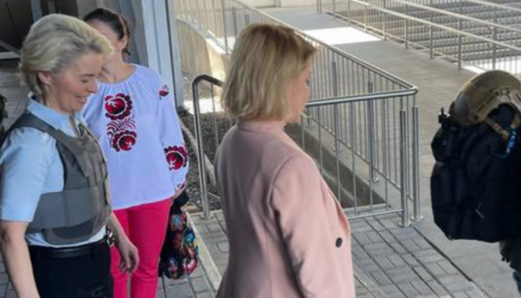 Η πρόεδρος της Ευρωπαϊκής Επιτροπής ταξίδεψε στην ουκρανική πρωτεύουσα για να συναντηθεί με τον Πρόεδρο Βολοντίμιρ Ζελένσκι προκειμένου να συζητήσουν το αίτημα της χώρας για ένταξη της στην ΕΕ, καθώς και τον τρόπο χρηματοδότησης της ανοικοδόμησης του κατεστραμμένου από τον πόλεμο έθνους.