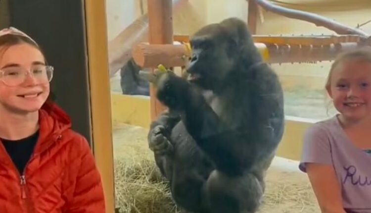 Βίντεο που ανέβηκε στο το YouTube δείχνει τον γορίλα να κάνει μια απρεπή χειρονομία στα δύο μικρά κορίτσια που στεκόντουσαν μπροστά από την τζαμαρία.