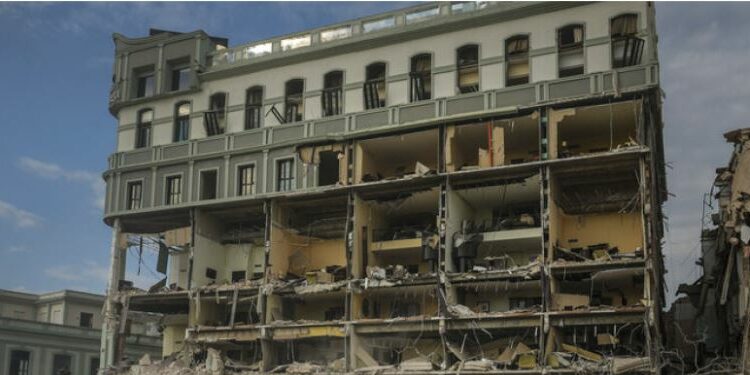 Πυροσβέστες και διασώστες συνεχίζουν να ψάχνουν στα συντρίμμια του εμβληματικού ξενοδοχείου, το οποίο ήταν κλειστό για συντήρηση και ετοιμαζόταν να επαναλειτουργήσει στις 10 Μαΐου.