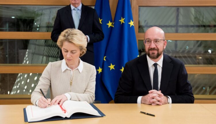 Οι πρόεδροι της Ευρωπαϊκής Επιτροπής και του Ευρωπαϊκού Συμβουλίου υπέγραψαν σήμερα τη συμφωνία για το Brexit την οποία έχει εγκρίνει το Λονδίνο και τώρα αναμένεται η επικύρωσή της από το Ευρωπαϊκό Κοινοβούλιο, δήλωσε η Ούρσουλα φον ντερ Λάιεν.