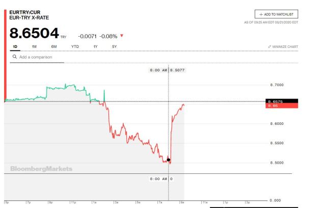 Είναι ενδεικτικό ότι λίγο αργότερα, η τουρκική λίρα πήρε ξανά τον κατήφορο. Ως γνωστόν ο Ερντογάν ανακοίνωσε πως η Τουρκία ανακάλυψε στη Μαύρη Θάλασσα το μεγαλύτερο κοίτασμα φυσικού αερίου στην ιστορία της, το οποίο περιέχει 320 δισεκ. κυβικά μέτρα, και πρόσθεσε πως υπάρχουν πολλές πιθανότητες και για άλλα ευρήματα στην περιοχή.