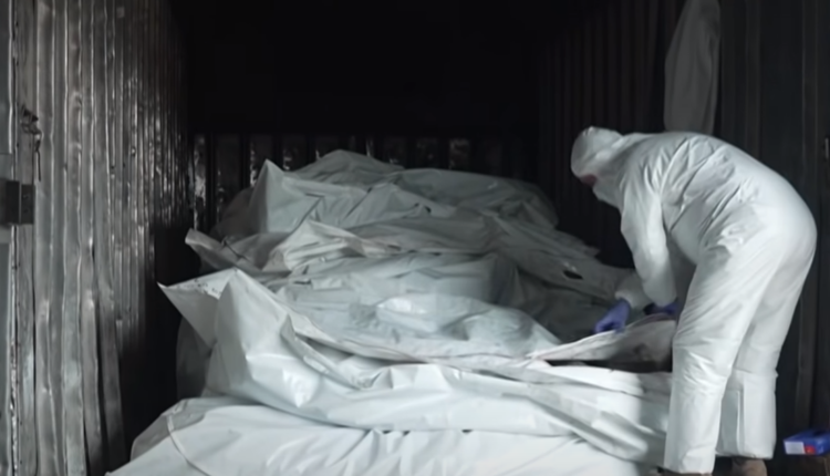 «Σε αυτό το τρένο-ψυγείο φυλάσσονται πολλές εκατοντάδες πτώματα Ρώσων κατακτητών. Τα περισσότερα μεταφέρθηκαν από την περιοχή του Κιέβου, κάποια από το Τσερνίχιφ και από κάποιες άλλες περιοχές επίσης», είπε ο Λιαμζίν.