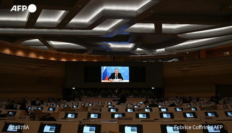 Οι διπλωμάτες αποχώρησαν από την αίθουσα κατά την έναρξη της βιντεοσκοπημένης ομιλίας του Λαβρόφ, ο οποίος αρχικά σκόπευε να μεταβεί στη Γενεύη για τη Διάσκεψη για τον Αφοπλισμό. Όμως χθες Δευτέρα ακύρωσε το ταξίδι αυτό λόγω των «αντιρωσικών κυρώσεων», όπως τις χαρακτήρισε, που δεν του επιτρέπουν να πετάξει στον εναέριο χώρο της ΕΕ.