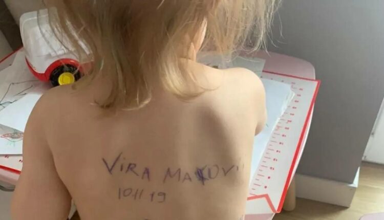 Η Sasha Makoviy μοιράστηκε στα social media την εικόνα της κόρης της Vira έχοντας γράψει με στυλό στην πλάτη της την ημερομηνία των γενεθλίων της και τους αριθμούς τηλεφώνου της χαραγμένους με στυλό στο σώμα της.