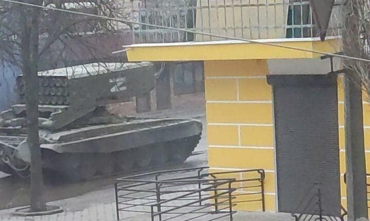 Το βίντεο, που κοινοποιήθηκε στο Twitter από τον ανταποκριτή του CNN, Frederik Pleitgen, δείχνει ένα βαρύ φλογοβόλο TOS-1, το οποίο μπορεί να εκτοξεύει θερμοβαρικούς πυραύλους τοποθετημένους σε σασί άρματος T-72.