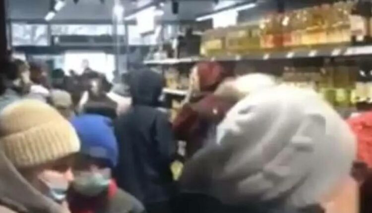 Οι πολίτες μπήκαν μέσα στα κλειστά σούπερ μάρκετ για να ανεφοδιαστούν με πάνω από 300 άτομα να περιμένουν στην ουρά για να γεμίσουν τα σπίτια και τα καταφύγια με τρόφιμα και άλλες απαραίτητες προμήθειες.