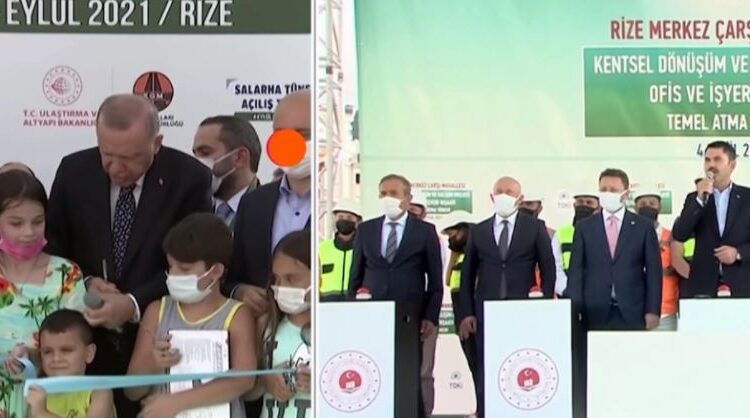Μπροστά από τον Ρετζέπ Ταγίπ Ερντογάν βρισκόταν και ένας δεκάχρονος, με ψαλίδι στο χέρι, για να κόψει τη γαλάζια κορδέλα. Ωστόσο μάλλον βιάστηκε και χρησιμοποίησε το ψαλίδι πριν δοθεί σήμα από τους διοργανωτές.