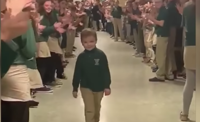 Το παιδί κατάφερε να βγει νικητής από αυτή τη μεγάλη μάχη με τον καρκίνο και όλοι στο σχολείο ξέσπασαν σε χειροκροτήματα μόλις τον είδαν.