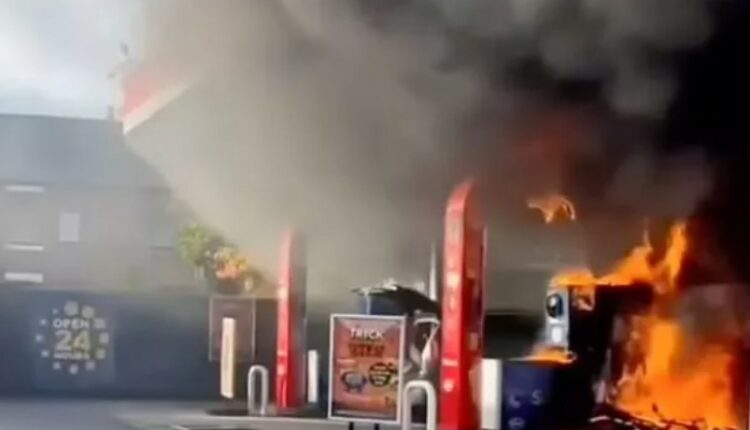 Οι φλόγες εκτοξεύτηκαν στον αέρα μετά την ανάφλεξη της μοτοσικλέτας και εξαπλώθηκαν στην αντλία, η οποία εξακολουθούσε να δέχεται καύσιμα από τις δεξαμενές αποθήκευσης κάτω από το έδαφος, όπως γίνεται αντιληπτό.