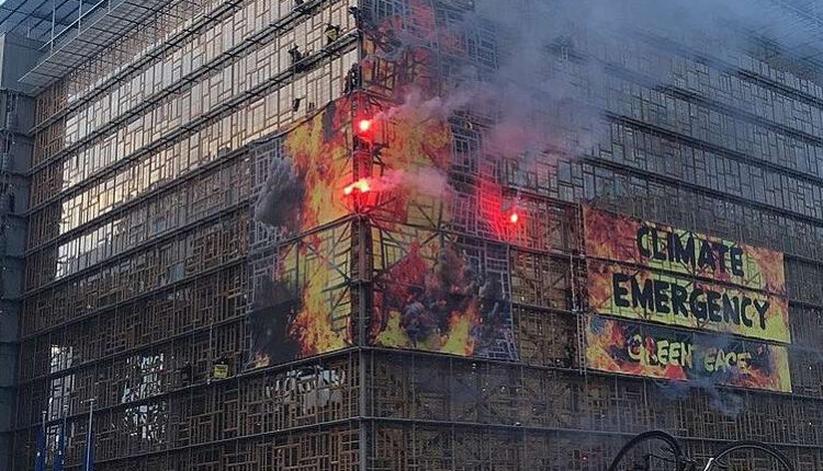 Χρησιμοποιώντας ένα παλιό πυροσβεστικό, περίπου 30 ακτιβιστές κατάφεραν να ξεγελάσουν την ασφάλεια του κτιρίου. Εν συνεχεία, σκαρφάλωσαν στην μεταλλική πρόσοψη του κτιρίου Europa, της νέας έδρας του Ευρωπαϊκού Συμβουλίου και άπλωσαν ένα μεγάλο πανό με το σύνθημα «Κλιματική Εκτακτη Ανάγκη».