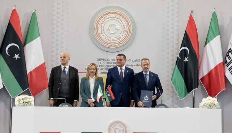 Η συμφωνία, που υπογράφηκε από την πρωθυπουργό της Ιταλίας Τζόρτζια Μελόνι, κατά τη διάρκεια επίσκεψής στην Τρίπολη, έχει στόχο να αυξήσει την παραγωγή φυσικού αερίου για την εγχώρια αγορά της Λιβύης, καθώς και τις εξαγωγές, μέσω της ανάπτυξης δύο υπεράκτιων κοιτασμάτων φυσικού αερίου. Η παραγωγή μάλιστα θα ξεκινήσει το 2026.