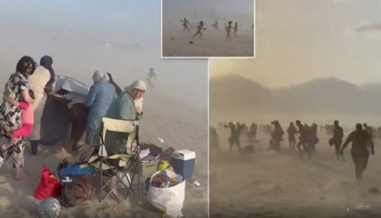 Οι ισχυροί άνεμοι σήκωσαν σύννεφα άμμου και ανάγκασαν τους παραθεριστές της παραλίας να διπλώσουν πετσέτες και ομπρέλες και να φύγουν, τρέχοντας για να γλιτώσουν από τους δυνατούς ανέμους.