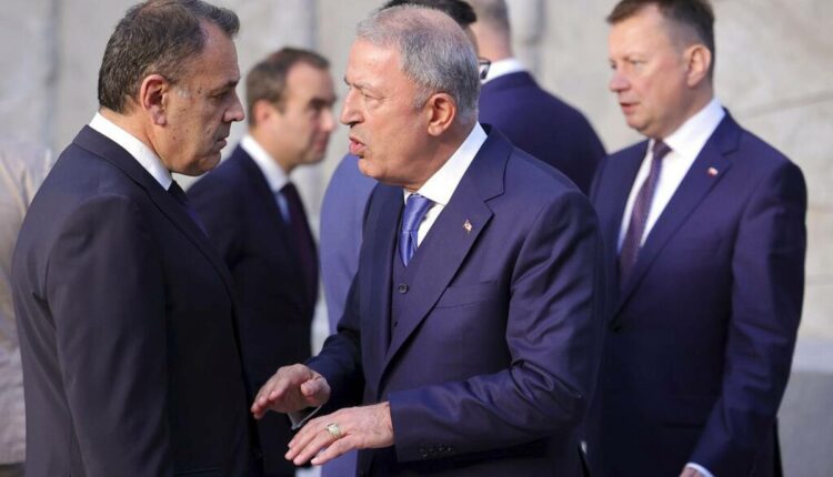Η τουρκική εφημερίδα, σε ανάρτησή της στο Twitter σημείωσε: «Σκληρός ήταν ο υπουργός Εθνικής Άμυνας Χουλουσί Ακάρ με τον Έλληνα ομόλογό του Νίκο Παναγιωτόπουλο, τον οποίο συνάντησε στη σύνοδο των υπουργών Άμυνας του ΝΑΤΟ» (φωτογραφία, επάνω, από το AP/Olivier Matthys).