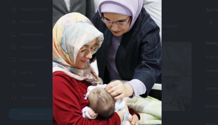 Η Εμινέ Ερντογάν, σύζυγος του προέδρου, φωτογραφήθηκε να επισκέπτεται τα μωρά μετά την άφιξή τους στα τουρκικά νοσοκομεία.