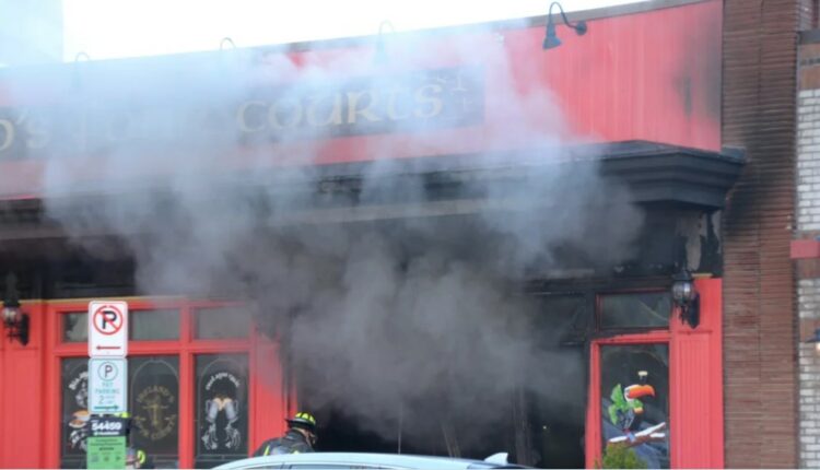 Φωτογραφίες από τη σκηνή δείχνουν μια τεράστια τρύπα στην πρόσοψη της παμπ, με σύννεφα καπνού να έχουν καλύψει την περιοχή.