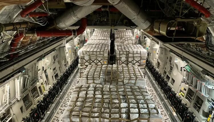 Ένα στρατιωτικό μεταγωγικό αεροσκάφος μετέφερε το πρώτο φορτίο βρεφικού γάλακτος από την Ευρώπη, προκειμένου οι ΗΠΑ να βοηθηθούν στην σημαντική έλλειψη που αντιμετωπίζουν.